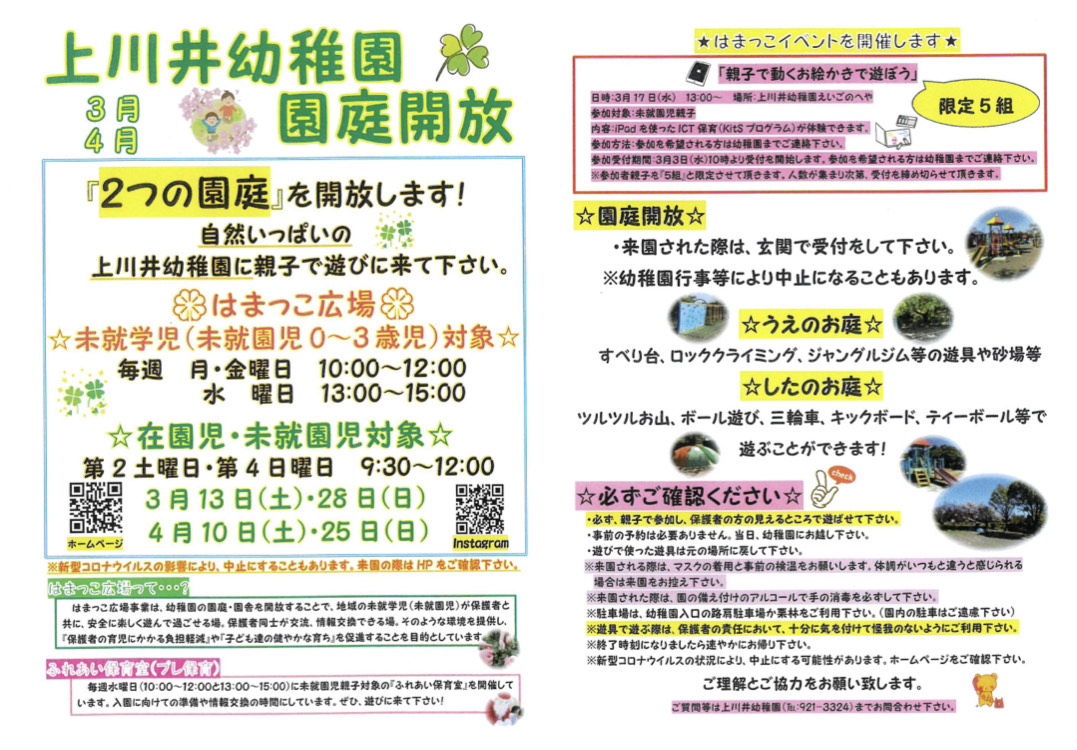 2021.02.27「3・4月園庭開放」のお知らせ
