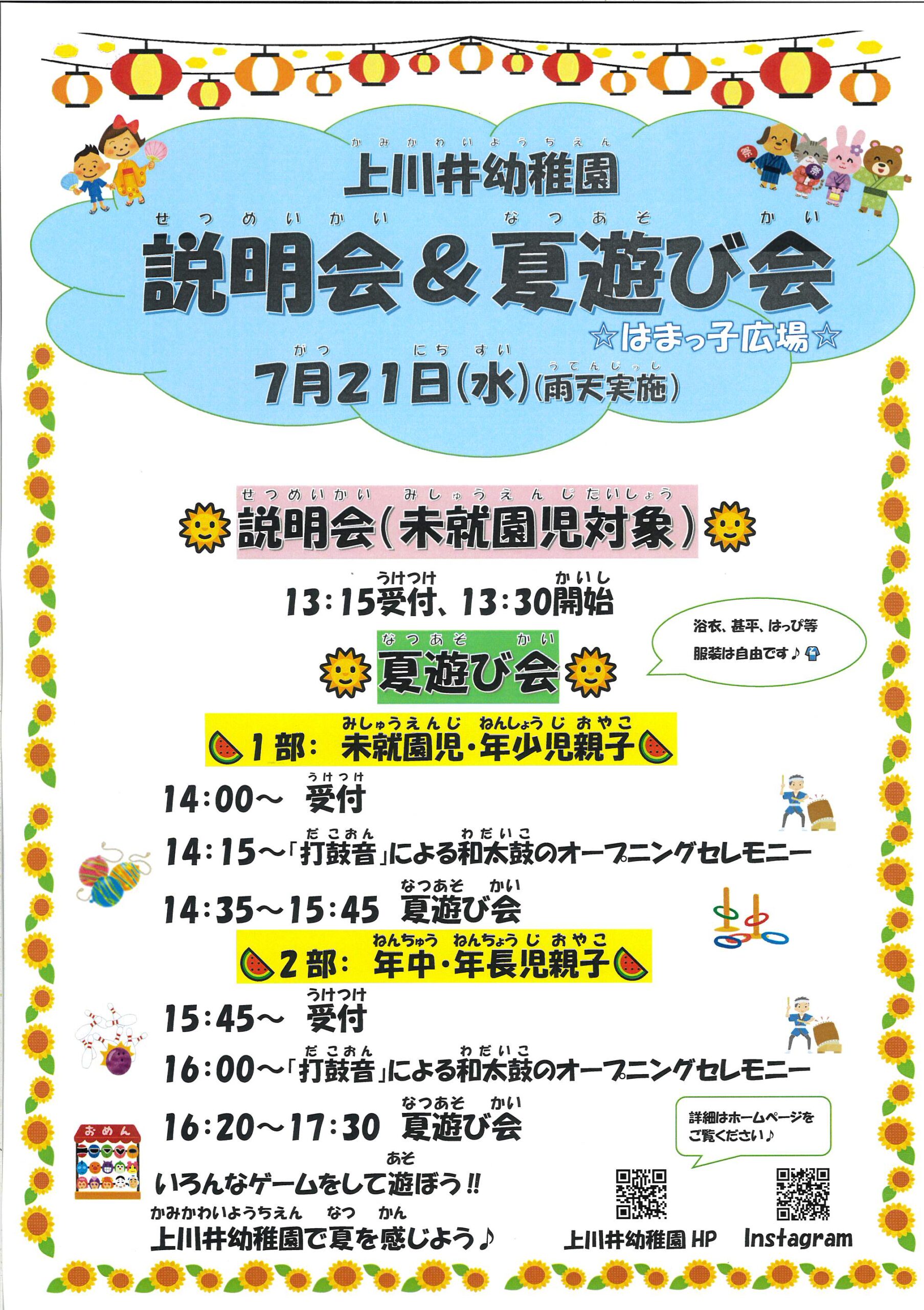 2021.06.277月21日(水)幼稚園説明会&夏遊び会のお知らせ