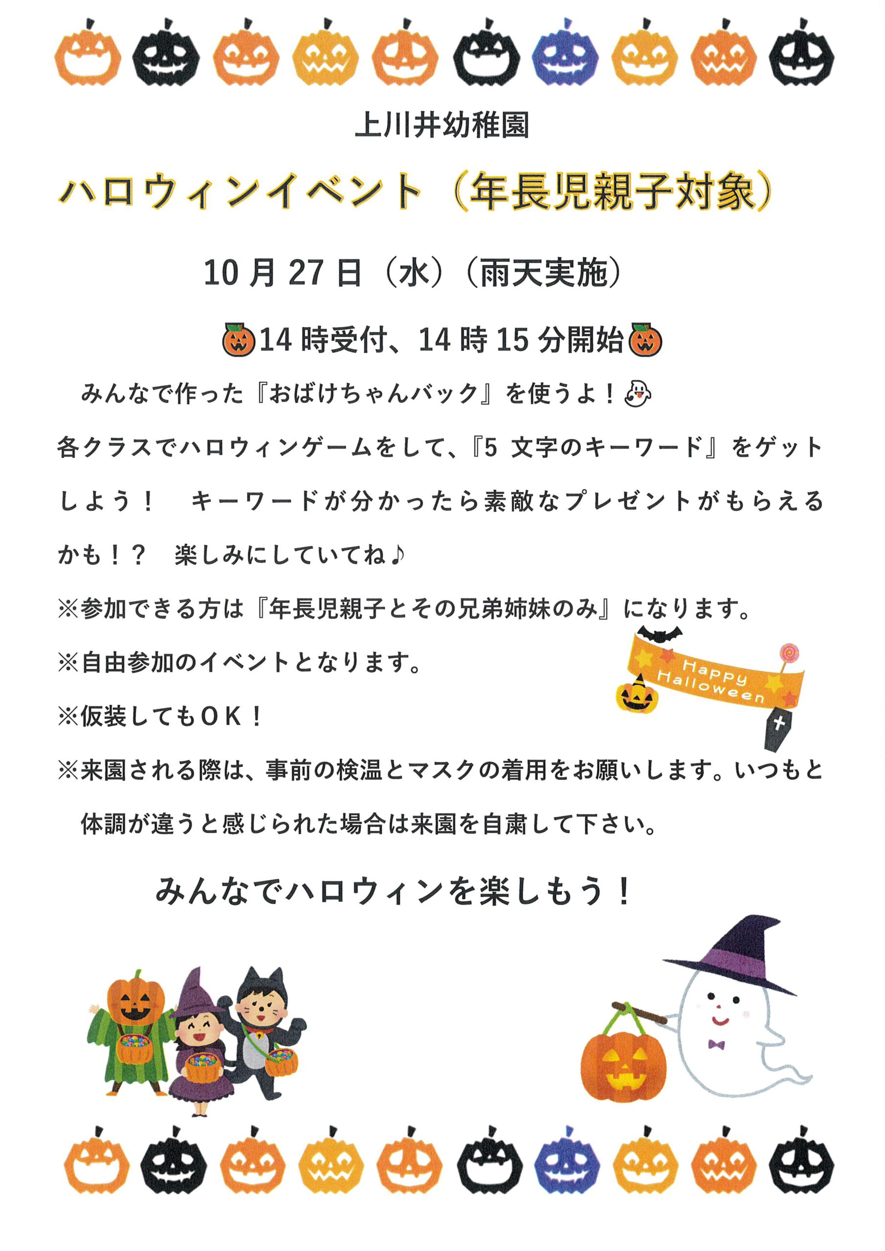 年長児親子対象の『ハロウィンイベント』を開催します。
