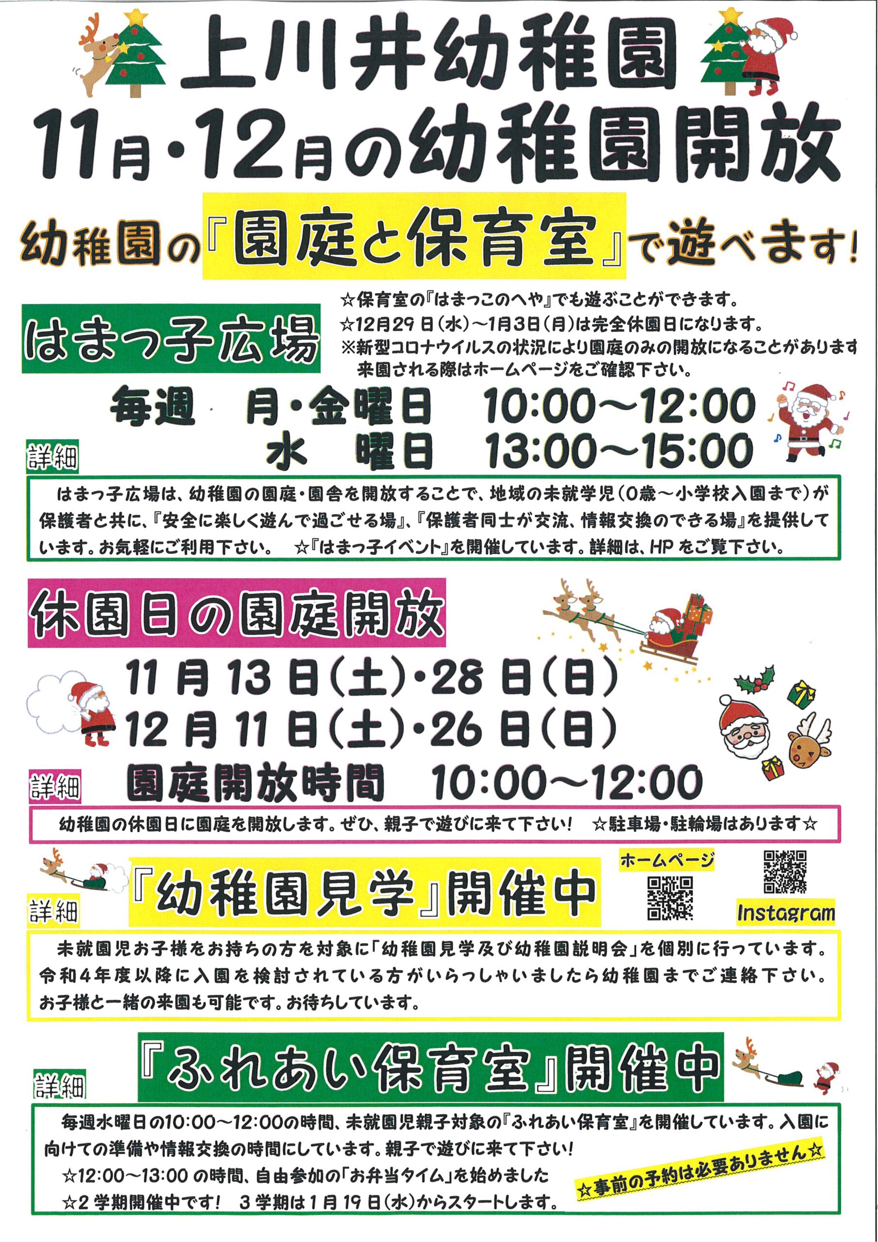 2021.11.0111・12月の『園庭開放』のお知らせ