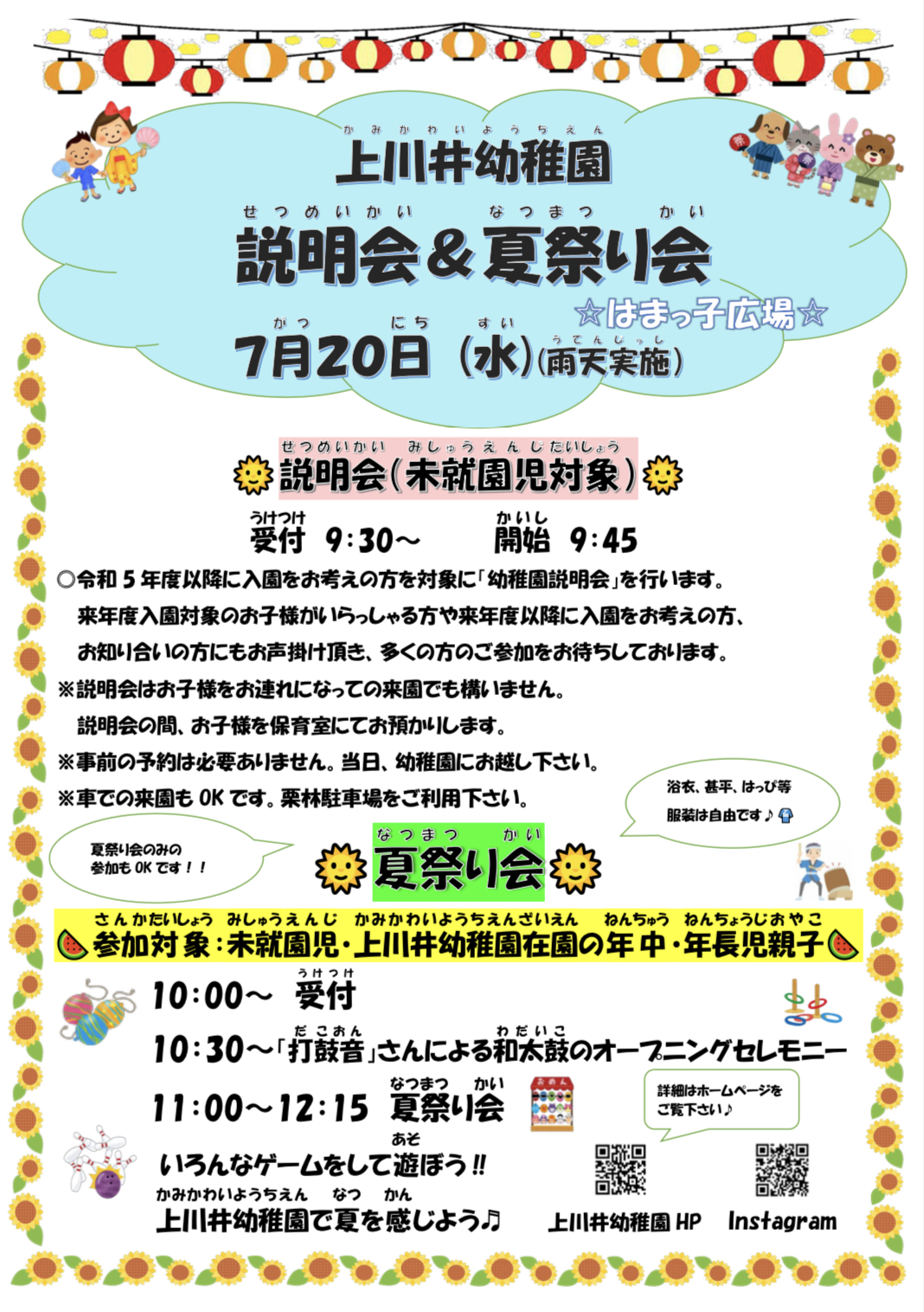 ☆浴衣、甚平、はっぴ等の服装は自由です!ぜひ、親子で遊びに来て下さい!