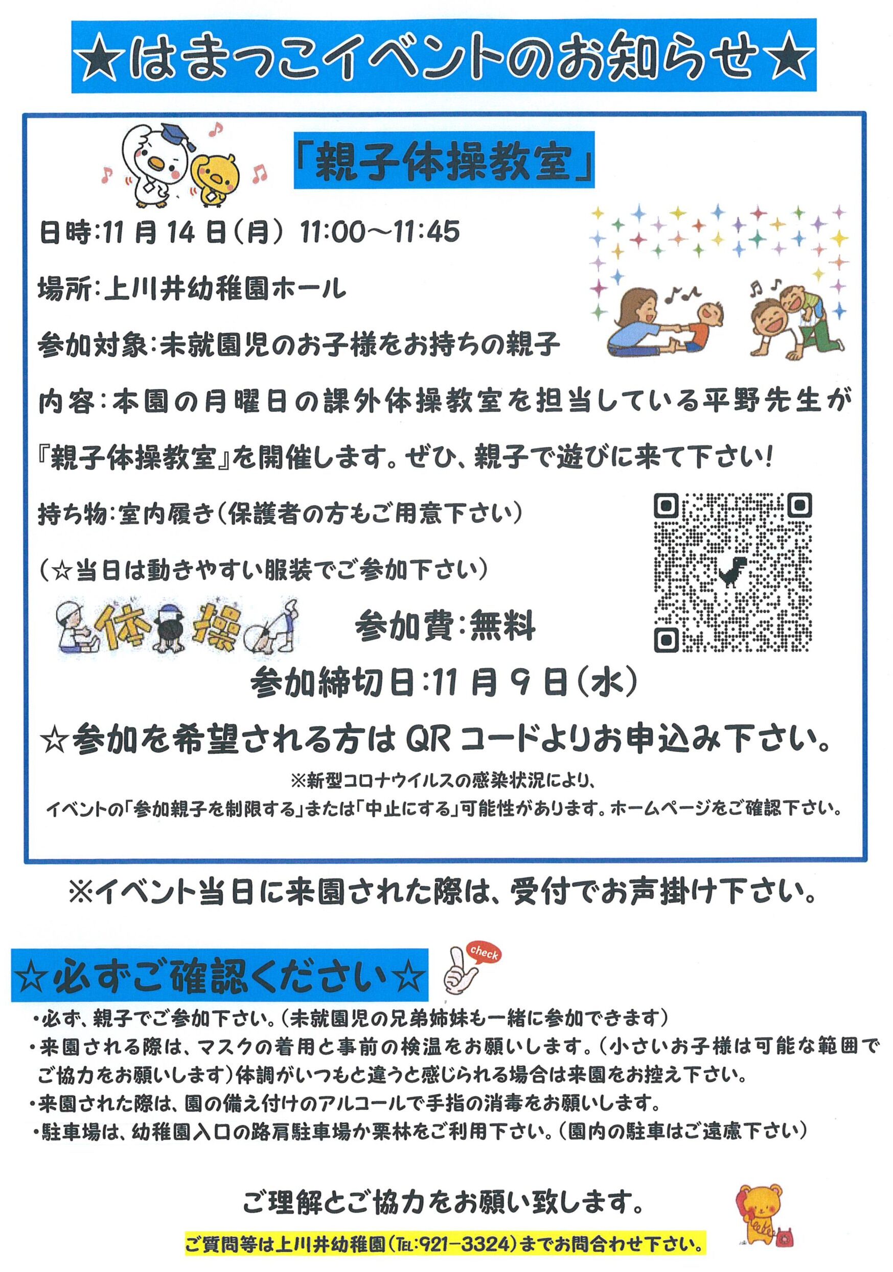 2022.11.0211月14日(水)『親子体操教室』のお知らせ