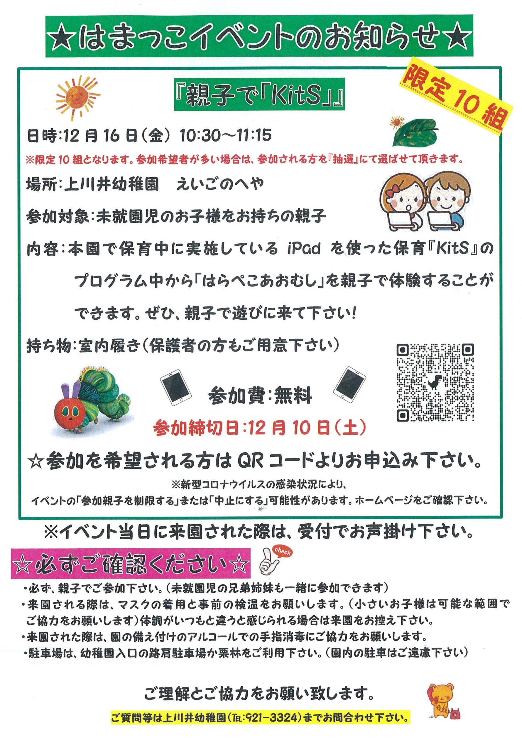 2022.11.2512月16日(金)のはまっこイベント『親子で「KitS」』のお知らせ