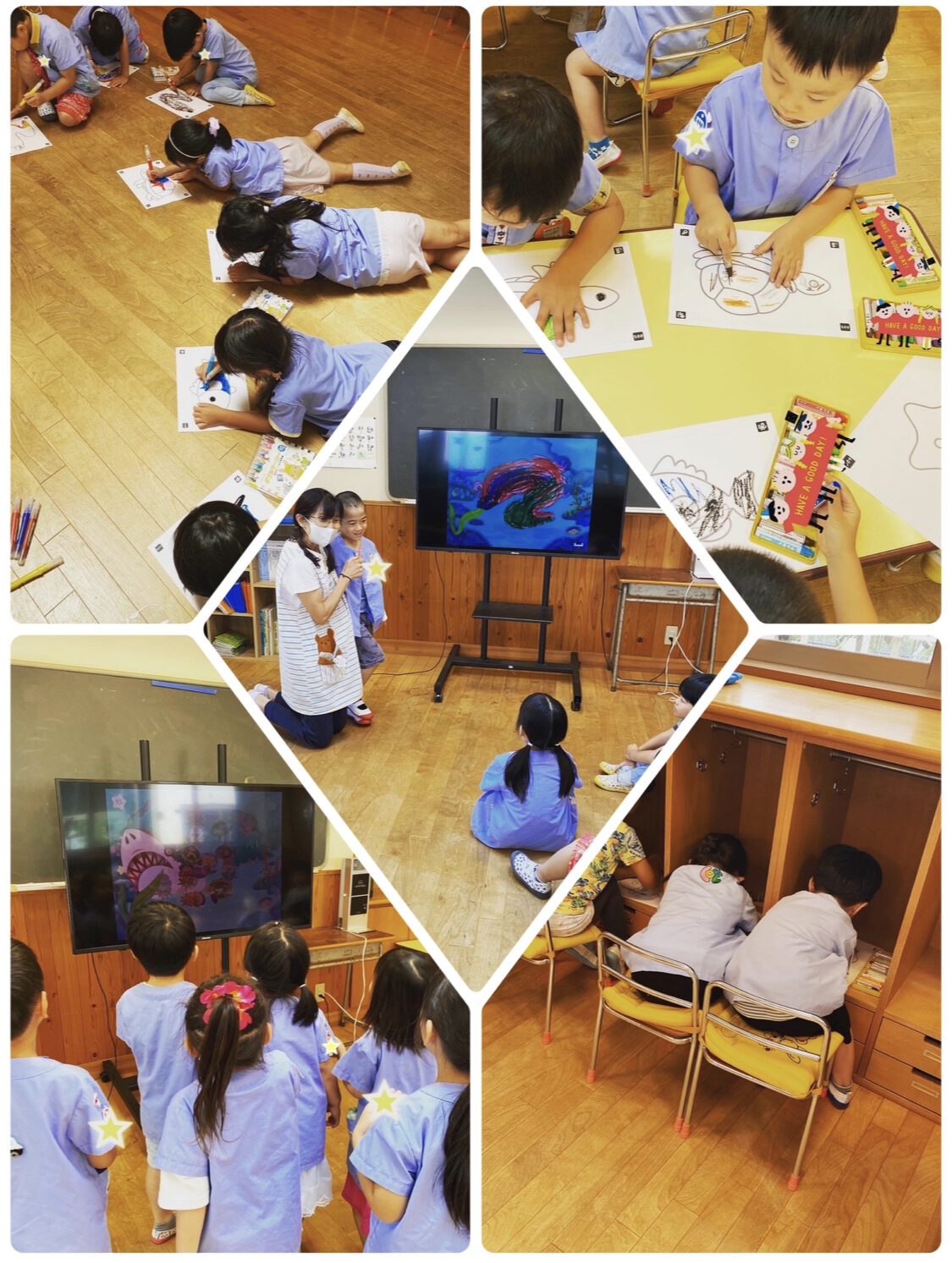 幼稚園・保育園上川井幼稚園の幼稚園ニュースです。 お電話でのお問い合わせ045-921-3324 教育実習・ボランティアスタッフ等もこちらからお問い合わせください。 上川井幼稚園について 入園案内 幼稚園ニュース 園内マップ 採用情報 045-921-3324 お問い合わせ news幼稚園ニュース HOME 幼稚園ニュース お知らせ KitS! 2023.07.04KitS! 今日は『KitS』😄 全学年『アートポン』をしました✨ 年中さんと年長さんは自分のやりやすい姿勢で考えて、その姿勢で色塗りをしました😄 椅子に座って描く、床で描く、ロッカーで描く、寝転がって描く…。 子ども達の色々な姿と色々な発見がありました👍 そして、最後には先生からの作品についてのインタビュー🎤 自分の作品への想いを少し発表できました😄 « 前へお知らせ一覧へ戻る 次へ »