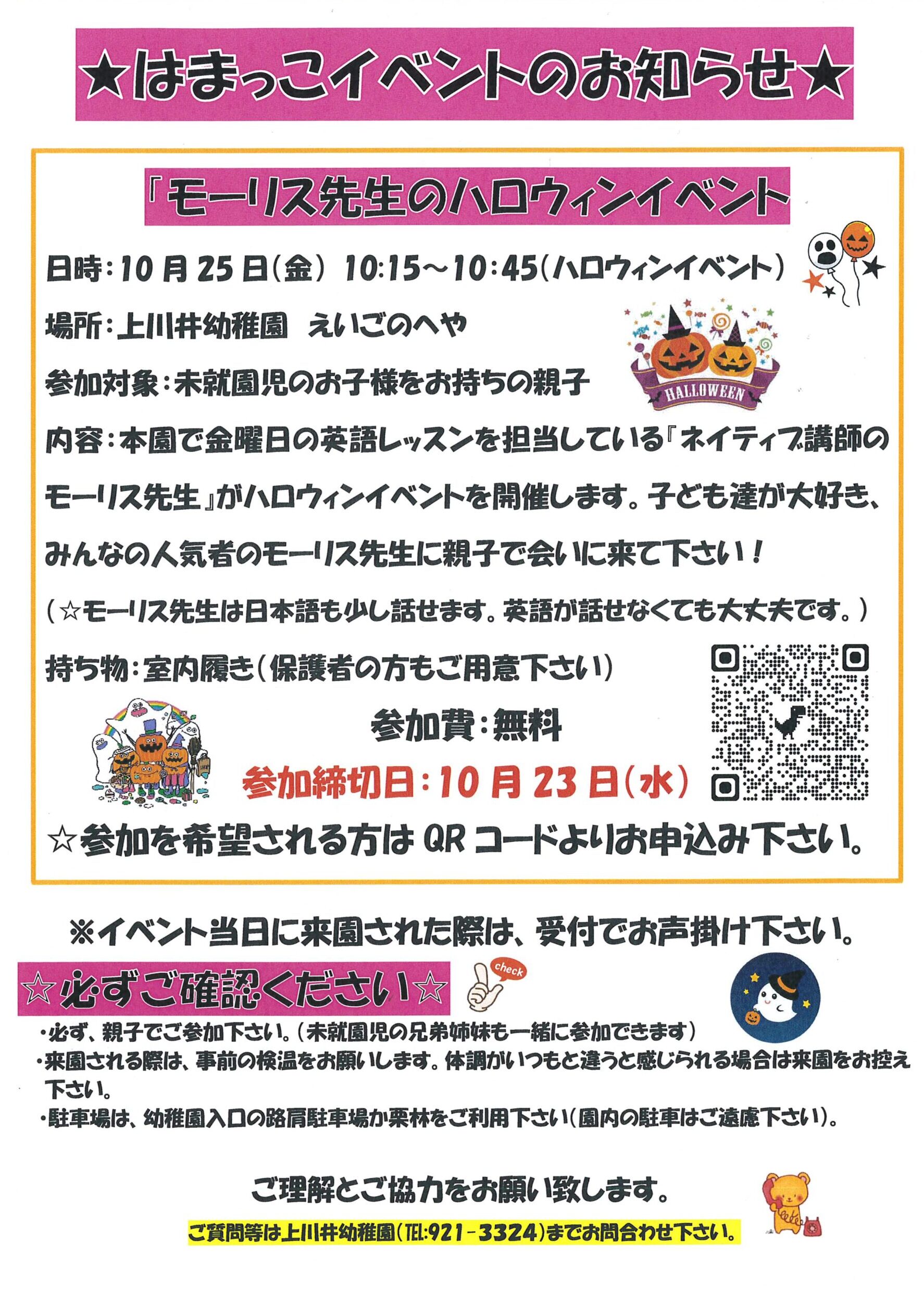 2024.10.0910月25日(金) はまっこイベント『モーリス先生のハロウィンイベント』のお知らせ!