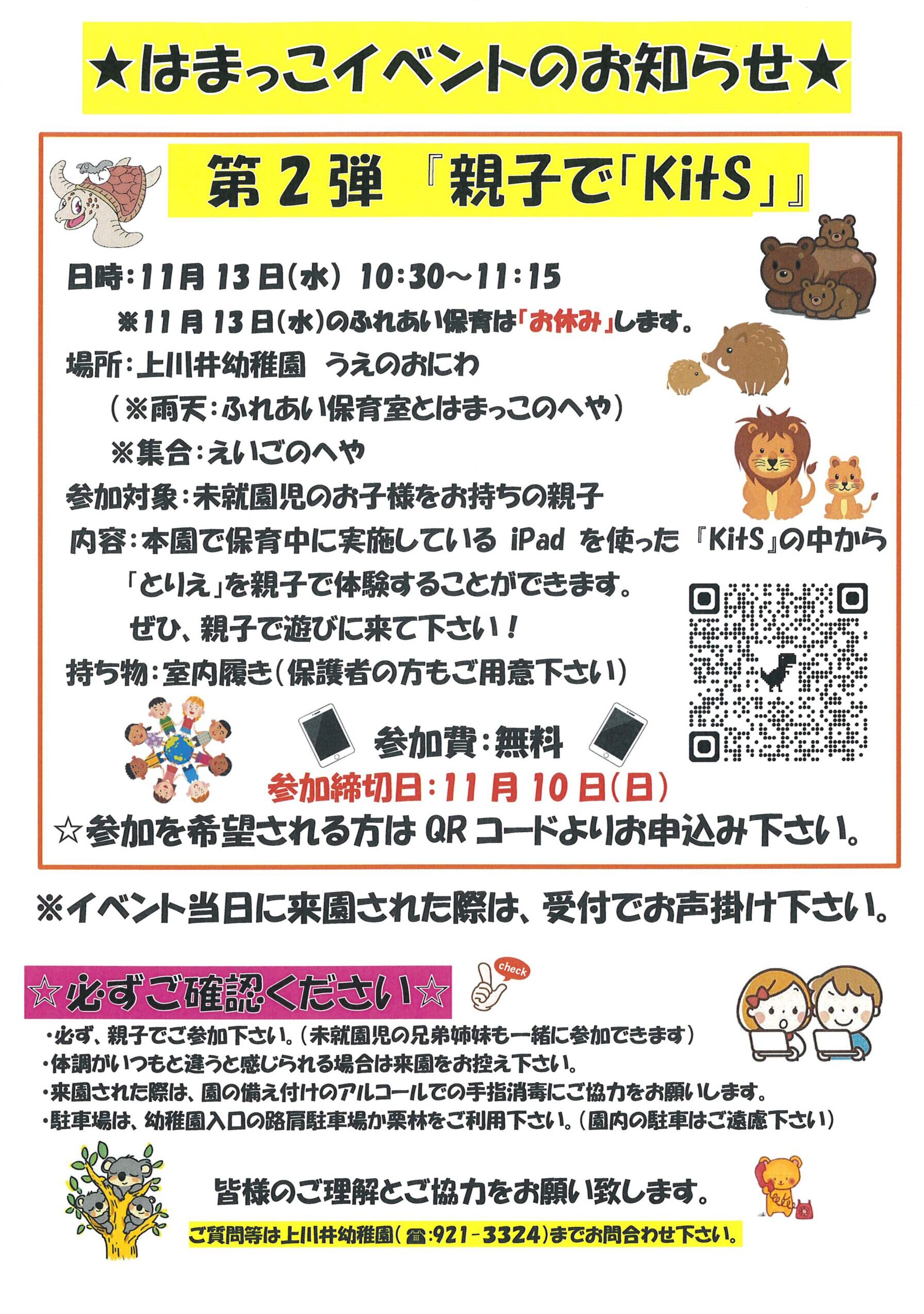 2024.10.3011月13日(水) はまっこイベント『第2弾 親子で「KitS」』のお知らせ!