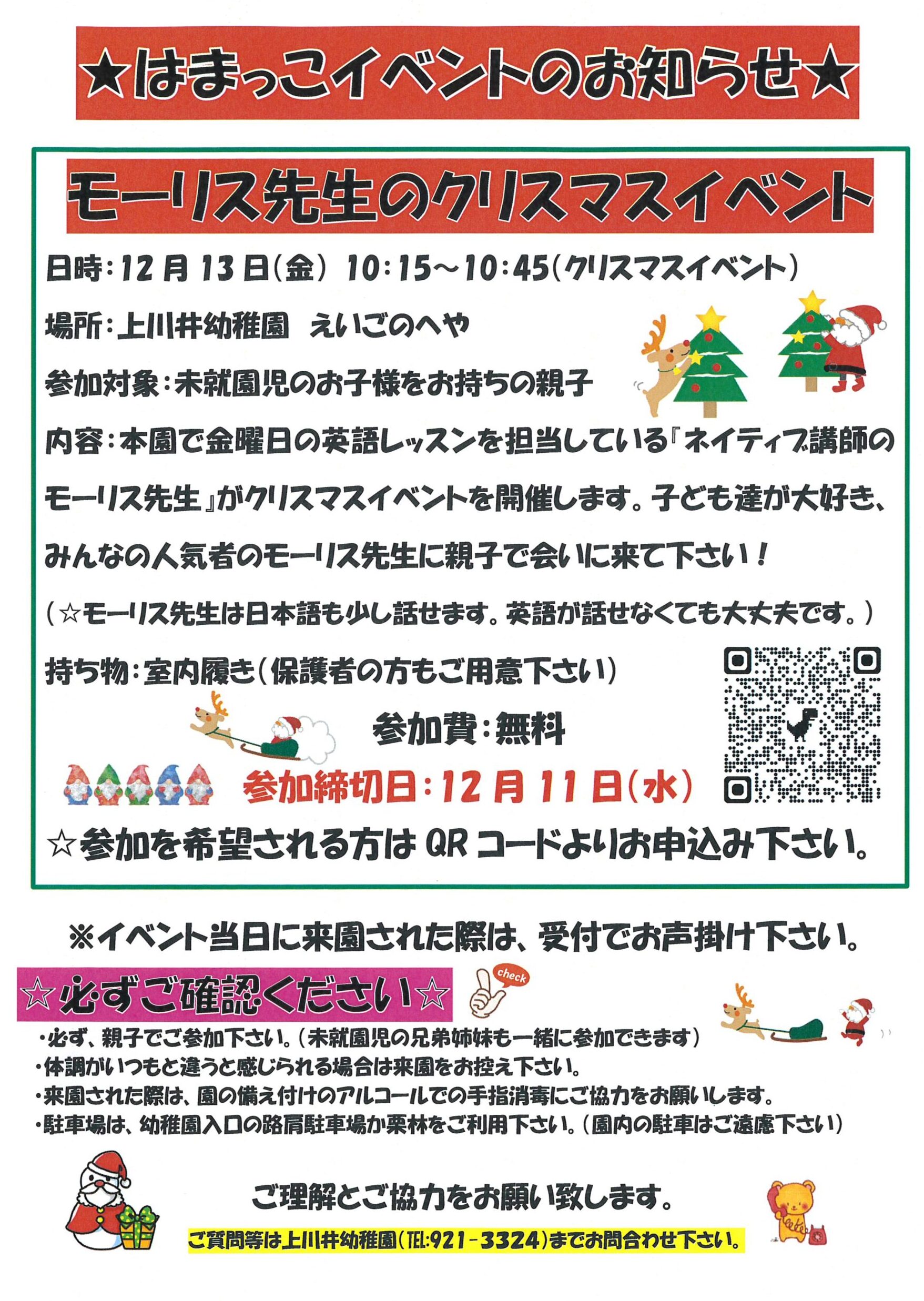 2024.12.0312月13日(金) はまっこイベント『モーリス先生のクリスマスイベント』のお知らせ!