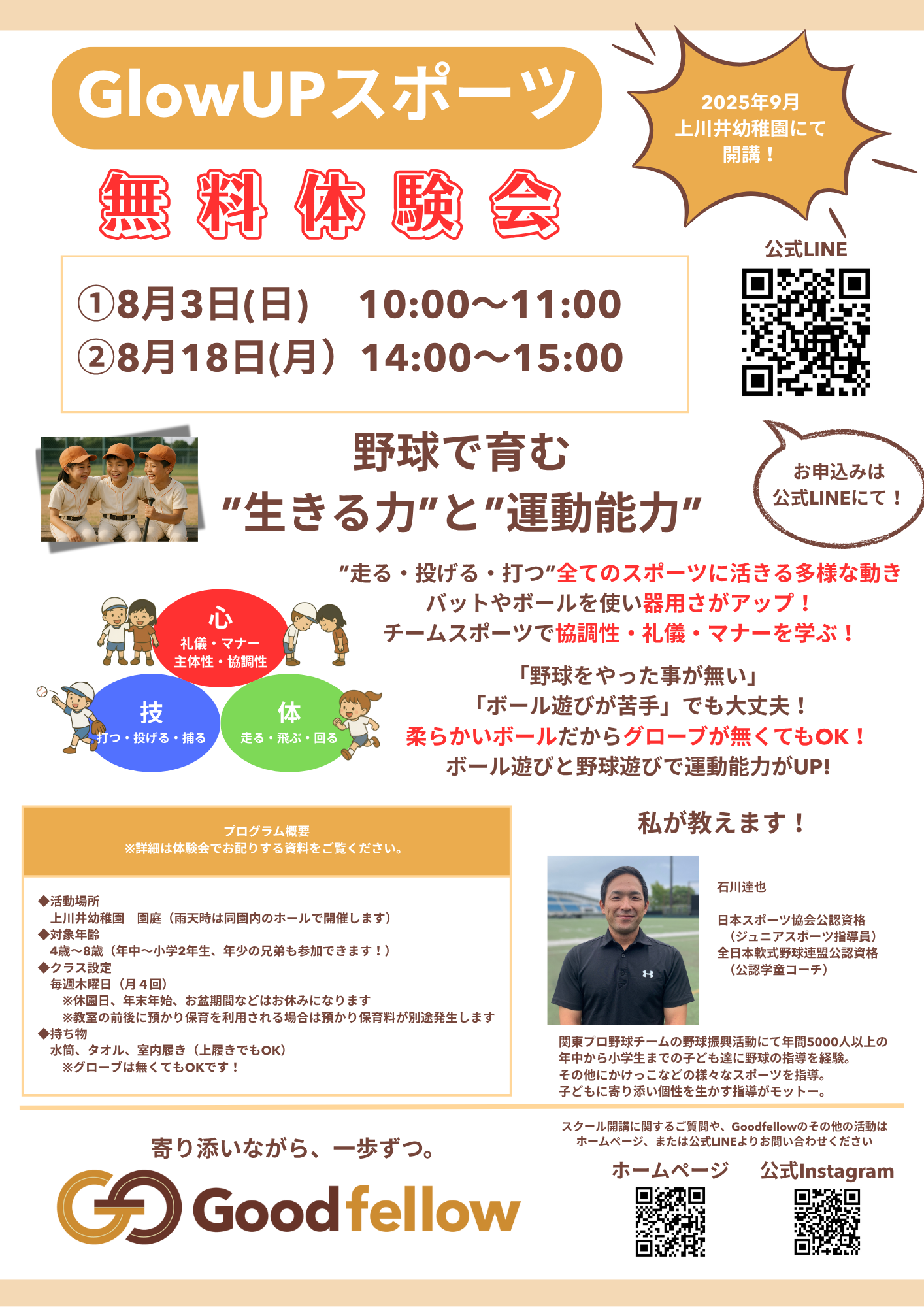 9月より新しい課外教室『GlowUPスポーツ』を開講します✨