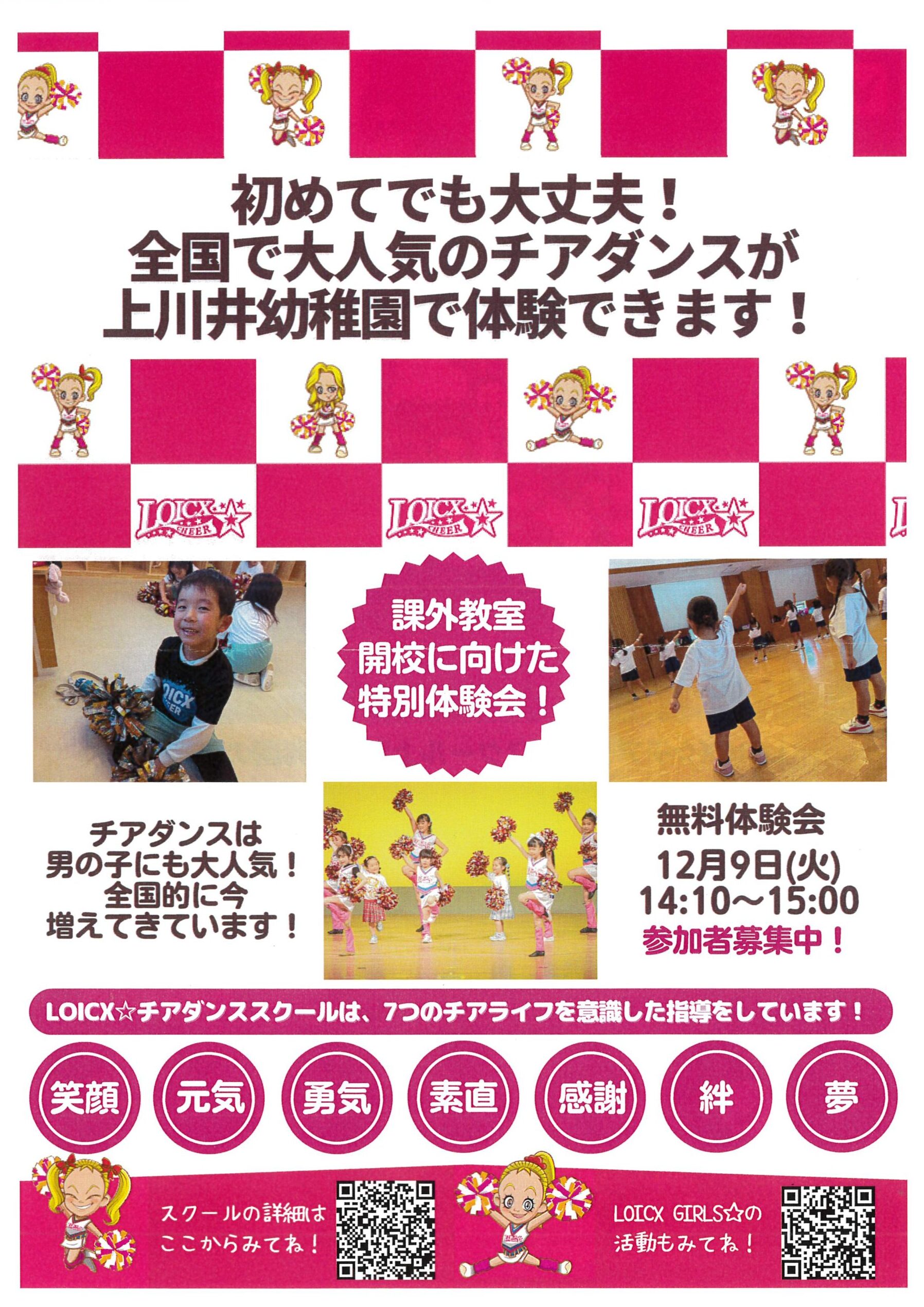 この度、上川井幼稚園にてキッズチアダンスの無料体験会を開催する事が決まりました!