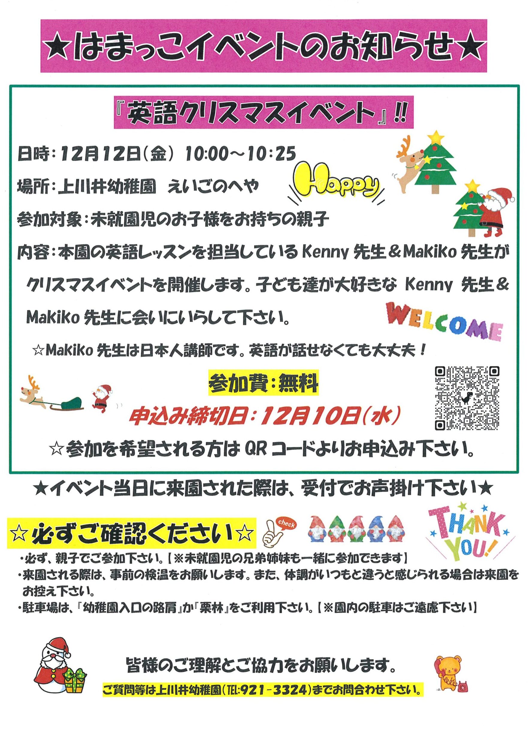 子ども達の大好きなKenny先生&Makiko先生がクリスマスイベントを開催します‼️