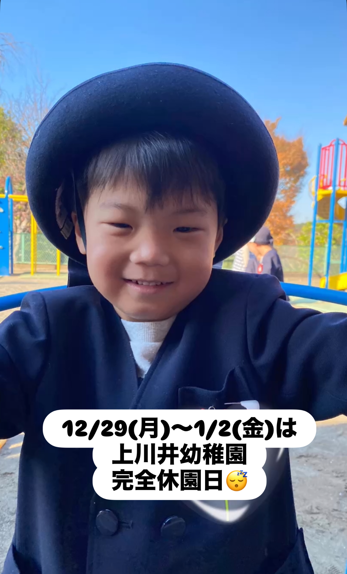 幼稚園・保育園上川井幼稚園の幼稚園ニュースです。 お電話でのお問い合わせ045-921-3324 教育実習・ボランティアスタッフ等もこちらからお問い合わせください。 上川井幼稚園について 入園案内 幼稚園ニュース 園内マップ 採用情報 045-921-3324 お問い合わせ news幼稚園ニュース HOME 幼稚園ニュース お知らせ 12月29日(月)〜1月2日(金)は『完全休園日』😴 2025.12.2612月29日(月)〜1月2日(金)は『完全休園日』😴 12月29日(月)〜1月2日(金)は『完全休園日』になります😴 はまっこ広場も『おやすみ』になります💦 新年は1月5日(月)からSTARTします🍀 よろしくお願いします🙇 « 前へお知らせ一覧へ戻る 次へ »