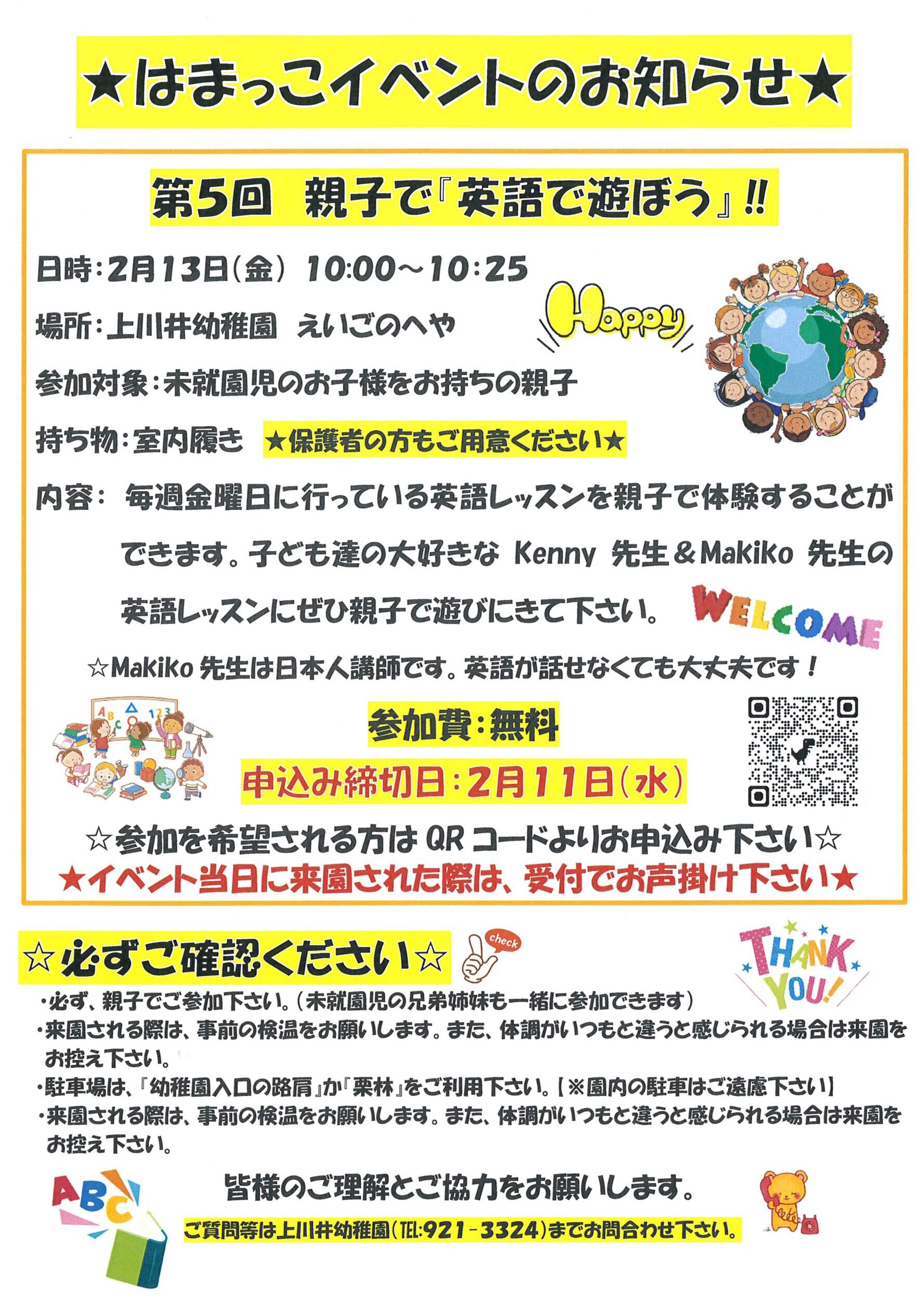 2026.02.02⭐はまっこイベント⭐『親子で『英語であそぼう』‼️』のお知らせ📢